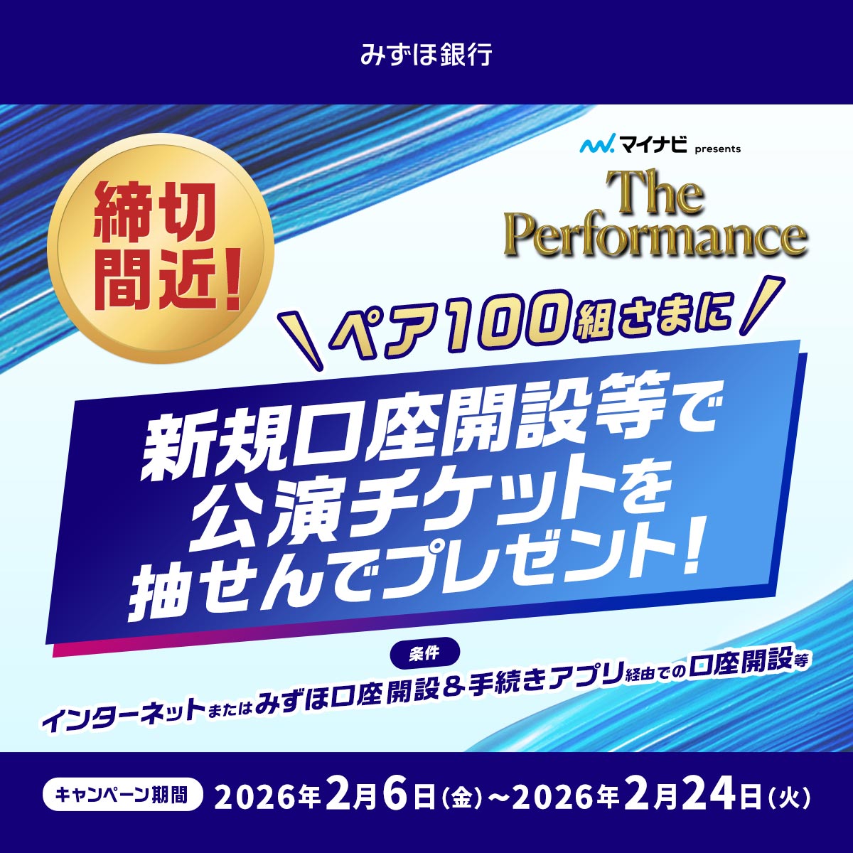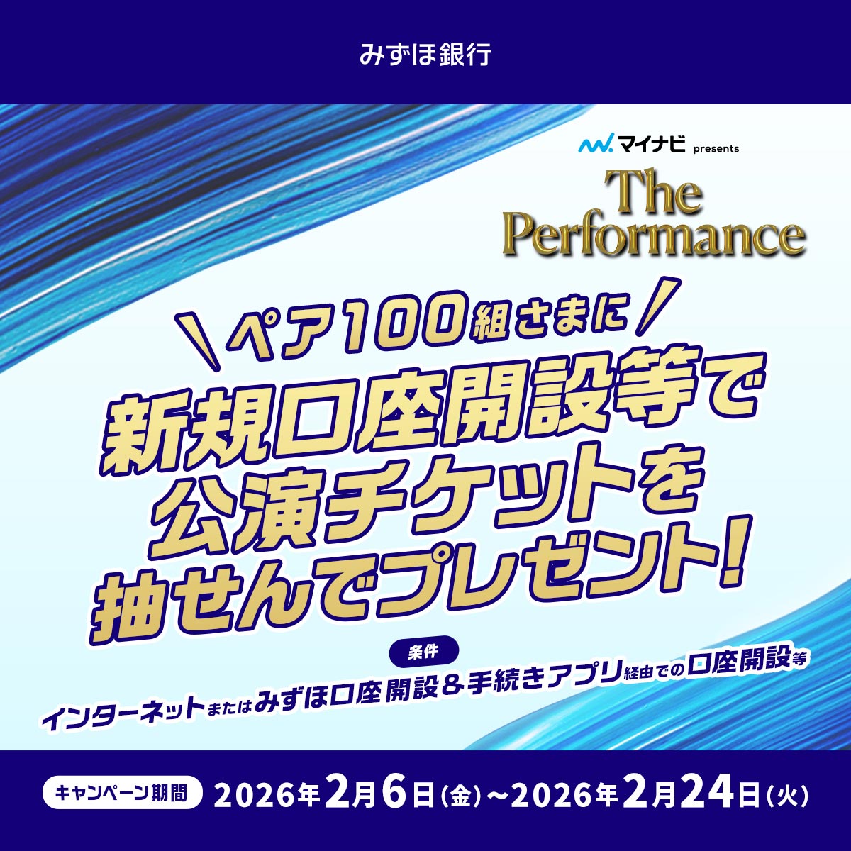 この度、2月6日(金)より本公演の協賛パートナーのみずほ銀行にて新規口座開設をした方に、ペア100組さまにチケットが当たるキャンペーンがスタートします!